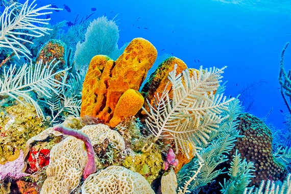 Vibrant Coral Reef Landscape With Yellow Sponge Original Etsy Uk